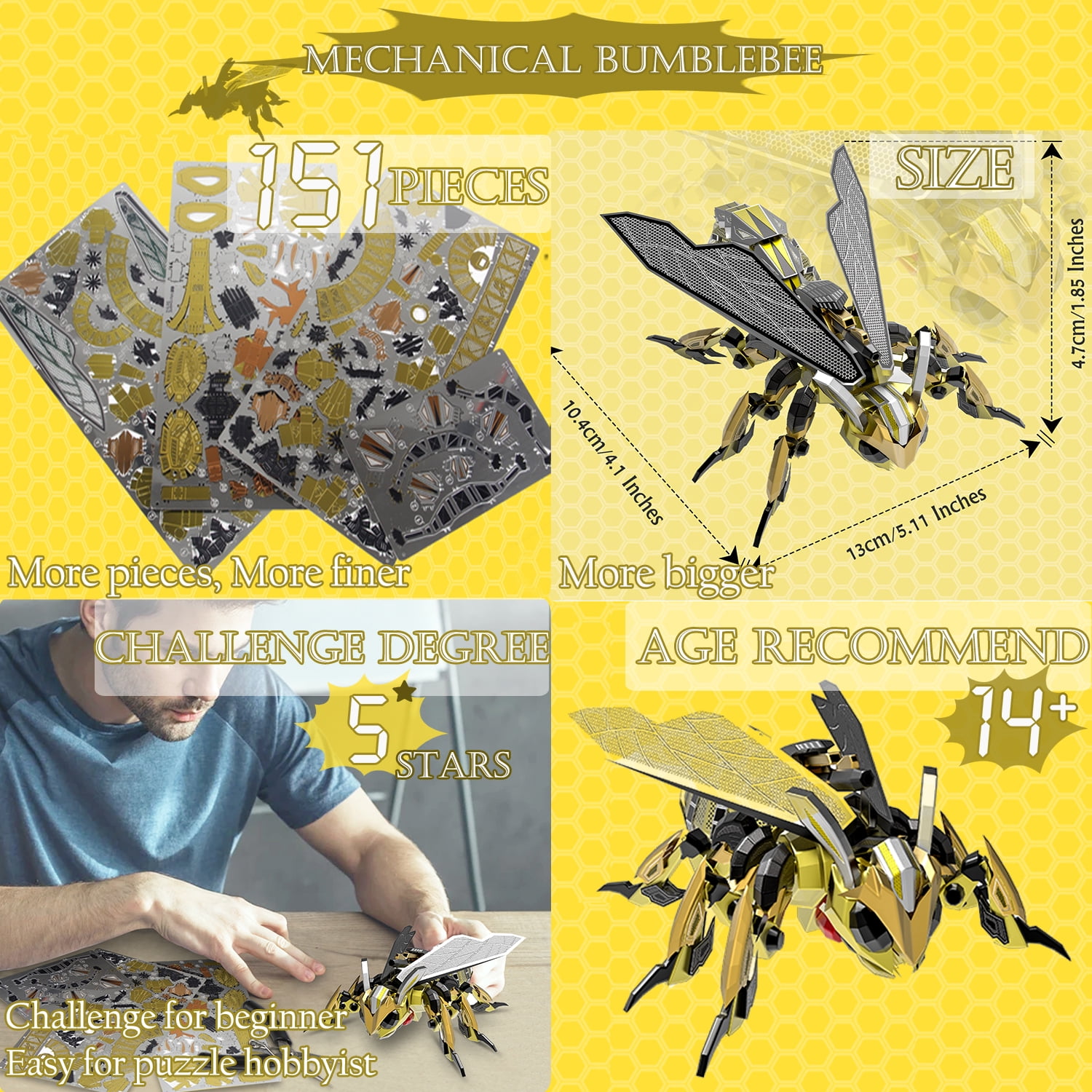 Microworld 3d Metal Puzzle Mechanical Bumblebee Model Building Kits Laser Cut Diy Jigsaw Puzzl Walmart Com